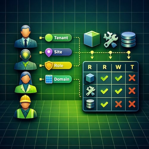 Ergebnis: Rollenmodell (RBAC/ABAC v1), Scope Resolver (Tenant/Site/Role/Domain) und Access Matrix für Read/Write je Tool.